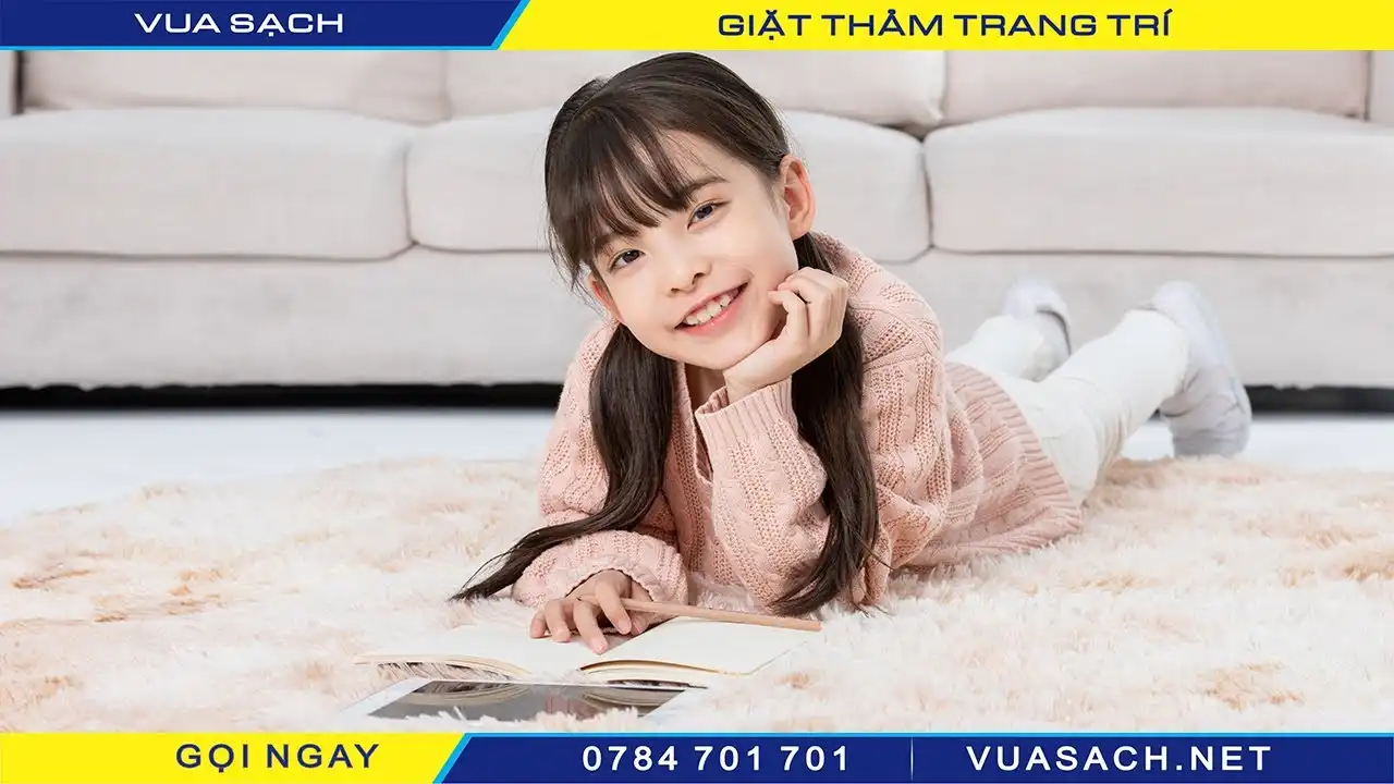 Quy trình giặt thảm trang trí tại Vua Sạch: Khô nhanh, khử mùi và diệt khuẩn 99%
